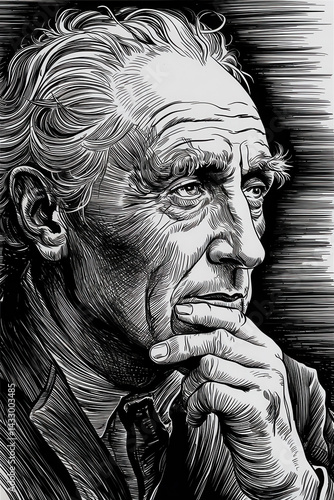 © VGX Ultra, Fototapeta premium Thoughtful Elderly Man Contemplating in Powerful Black and White Line Art