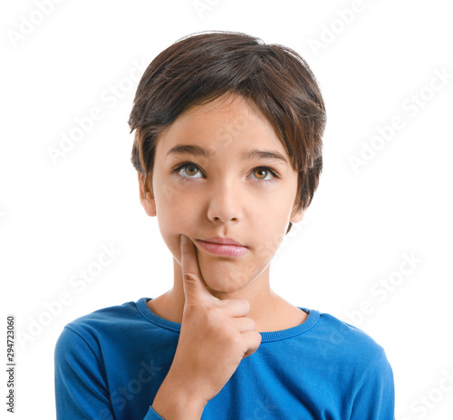 Fototapeta premium Thoughtful little boy on white background