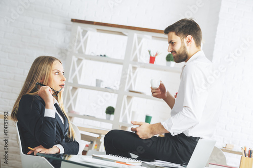 © peshkova, Fototapeta premium Thoughtful man and woman working on project