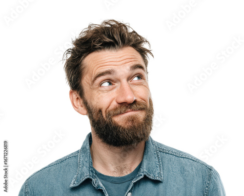© Nadya, Obraz premium Thoughtful man smiling portrait isolated on transparent background