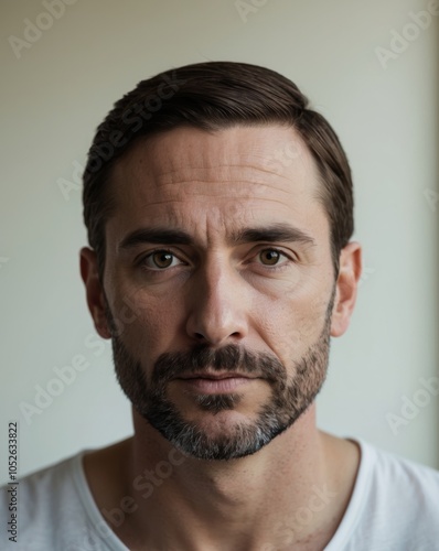 © Den Boro Day, Fototapeta premium Thoughtful man with beard and intense gaze.