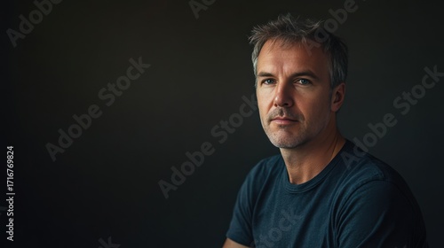 © J. Grayscale, Naklejka premium Thoughtful Portrait of a Mature Man Against a Dark Background