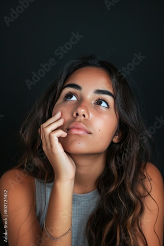 Fototapeta premium Thoughtful Young Woman Posing Against Dark Background