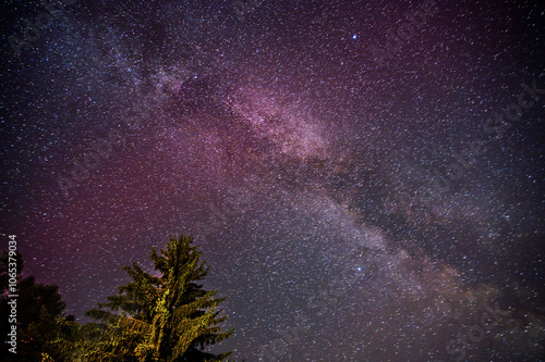 © slunicko24, Fototapeta premium Thousand star on night summer sky, Milky way and Aurora borealis.