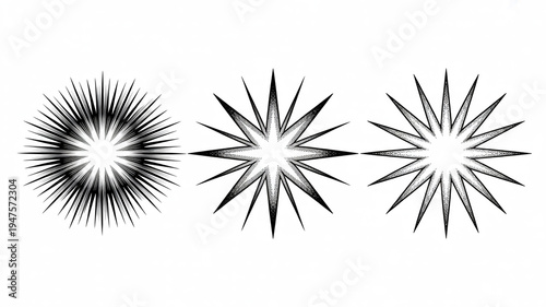 Obraz premium Three abstract starburst or sunburst graphic elements with varying line and...