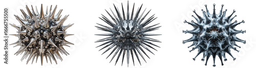 Obraz premium Three abstract viruslike particles isolated on transparent background