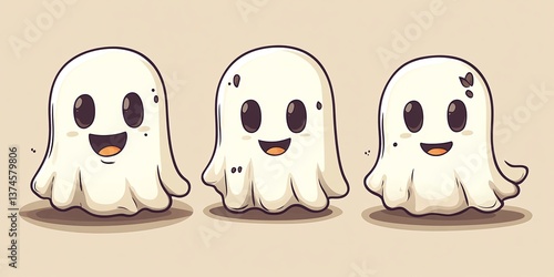 Obraz premium Three adorable cartoon ghosts with happy expressions. Perfect for Halloween!