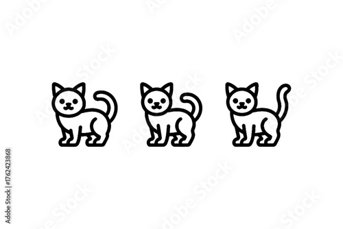 © Nadira, Naklejka premium Three adorable line art kittens standing side by side on a white background.