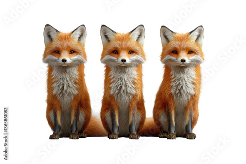 © Imaginate, Obraz premium Three Adorable Red Foxes Sitting Together - Perfect for Cute Animal Designs