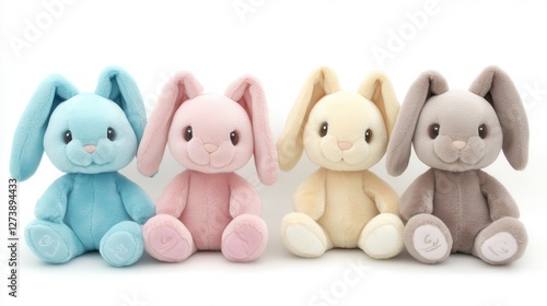 Obraz premium Three adorable stuffed animals are arranged closely on a light white surface,...
