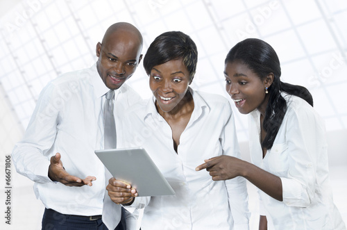 Fototapeta premium Three african business people with tablet PC