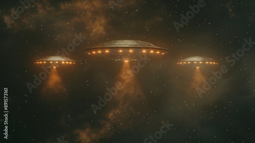 Obraz premium Three alien spaceships flying through the night sky