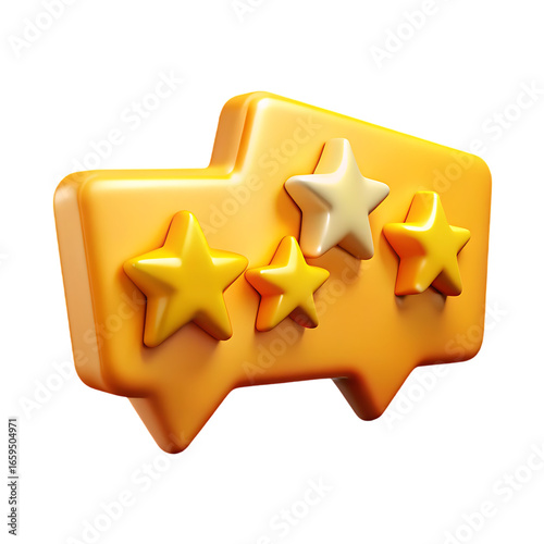 © Limon, Obraz premium Three and a half golden stars on a yellow chat bubble against a black background