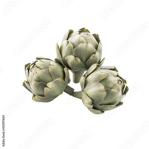 © Tohamina, Obraz premium Three artichokes together on black background fresh food healthy eating vegetarian cuisine