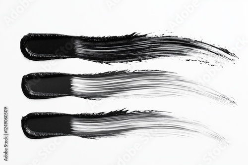 © NataliPro, Fototapeta premium Three artistic black paint strokes on a clean white background.