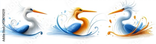 © PLE.POD, Obraz premium Three Artistic Herons in Water Splashes