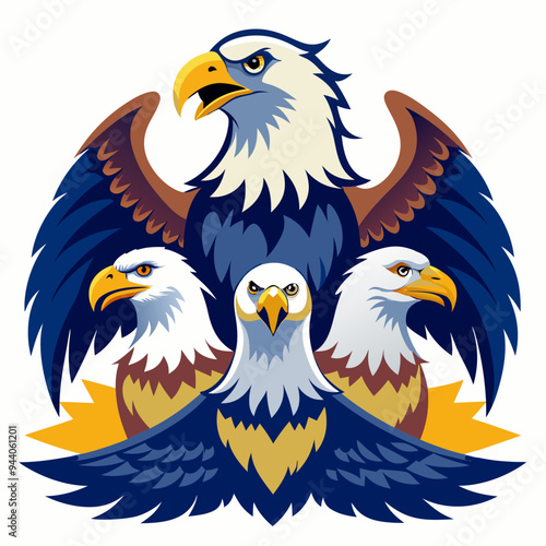 Obraz premium Three Bald Eagles with Spread Wings and Yellow Beaks