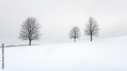 Fototapeta premium Three bare trees standing on a snowy hill in winter