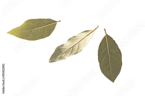 © masud, Fototapeta premium Three Bay Leaves, One Gold-Toned, Isolated on White