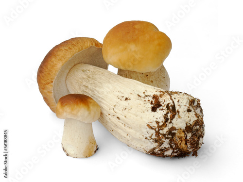 Fototapeta premium Three big brown boletuses on white