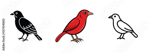 Fototapeta premium Three Bird Illustrations Black, Red, White Avian Designs