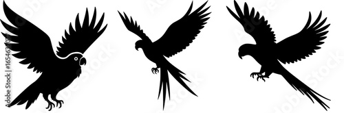 Obraz premium Three Bird Silhouettes: Eagle, Parrot, and Macaw