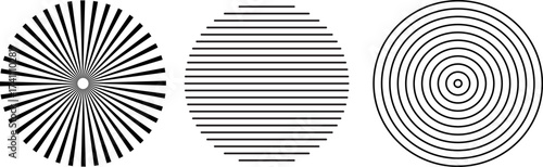 © Al, Obraz premium Three Black and White Circular Geometric Patterns Illustration.