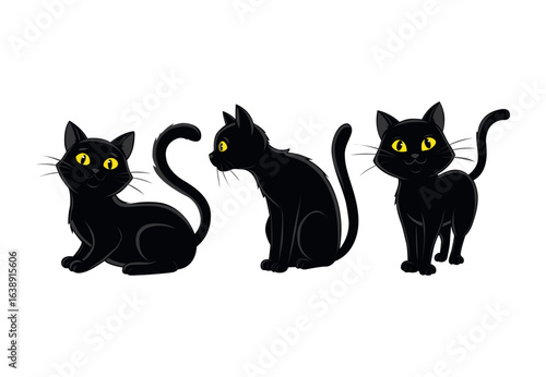 © MutakMera, Obraz premium Three black cats sitting in different poses