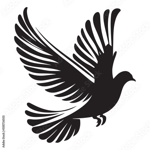 Obraz premium Three black dove silhouettes in flight, each with spread wings, depicted on a...