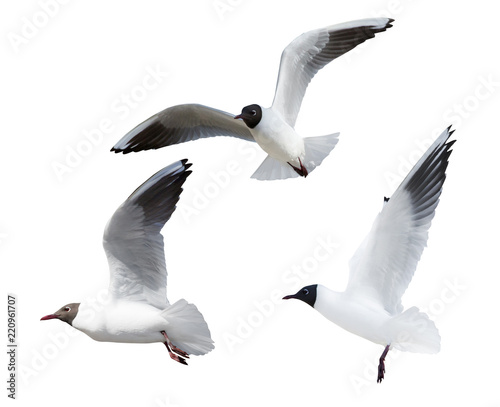 © Alexander Potapov, Obraz premium three black-headed small gulls in flight cutout