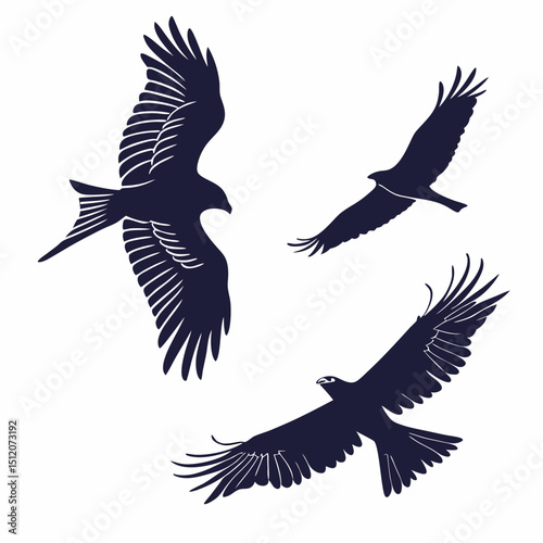 © NEWJ, Obraz premium Three black kites in flight silhouette