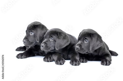 © Pumba, Obraz premium Three black lab puppies, two months old.