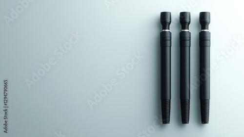 © Dece Std, Fototapeta premium Three black pens on grey background, minimalist design, product photography
