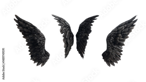 © Dori Bundles, Obraz premium three black wings are on a white surface