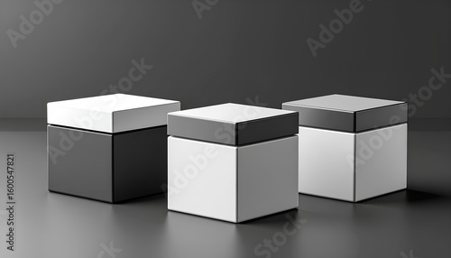 © Christian ezra, Obraz premium Three Blank Square Boxes Mockup Black White Gray