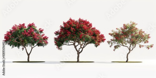 Fototapeta premium Three Blooming Trees in a White Background