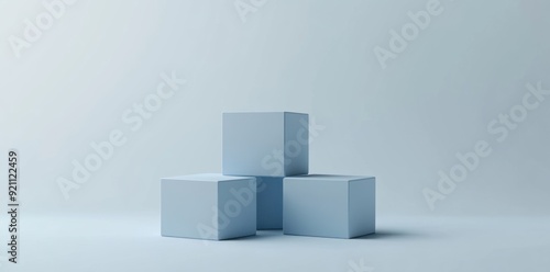 © Indah, Obraz premium Three Blue Cubes on a Light Blue Background