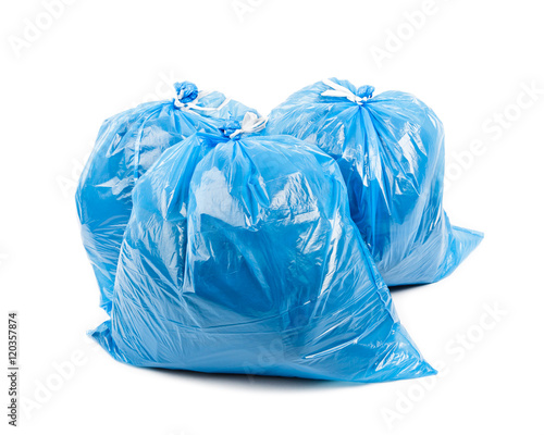 Fototapeta premium Three blue garbage bags