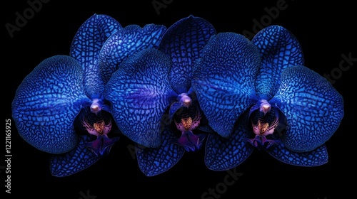 Fototapeta premium Three Blue Orchids on Black Background