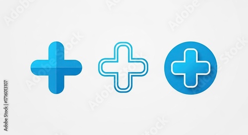 © HabiburRahman, Obraz premium Three blue plus sign icons isolated on white background