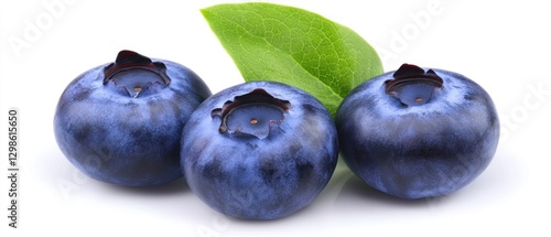 © diajengwd, Obraz premium Three Blueberries and a Green Leaf
