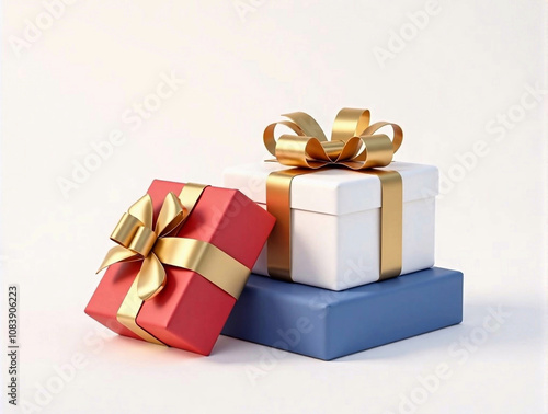 Obraz premium Three boxes stacked on top of each other, one red, one white, and one blue