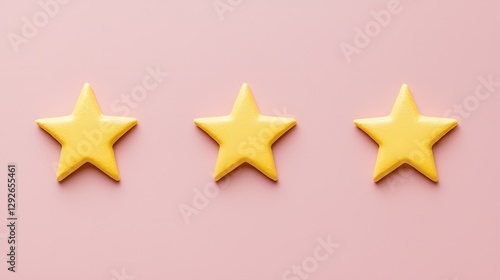 © Nat_Photo_AI, Obraz premium Three Bright Yellow Stars on Soft Pink Background for Creative Design and Decoration Purposes