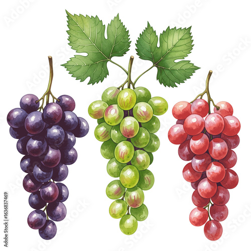 Fototapeta premium Three bunches of fresh grapes in different colors on black background