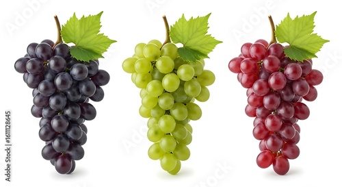 © Arif, Obraz premium Three bunches of fresh grapes including black green and red varieties