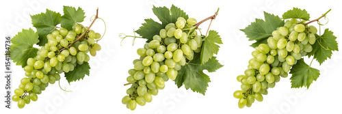 Obraz premium Three bunches of green grapes isolated on transparent background