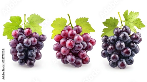 © Photo Dogg, Fototapeta premium Three Bunches of Red Grapes Isolated on White Background
