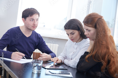 © photoniko, Fototapeta premium Three businessmen discussing something together
