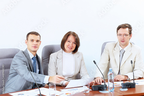 © Sergey Nivens, Obraz premium Three businesspeople at meeting