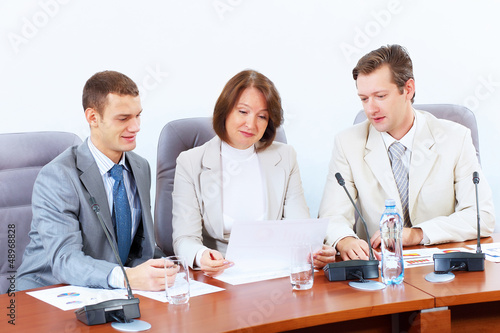 © Sergey Nivens, Obraz premium Three businesspeople at meeting